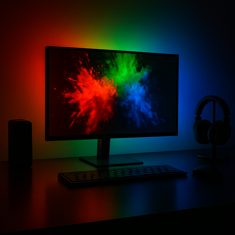 RGB Ambient Light Strip with 16 million color options for gaming setups and home décor.